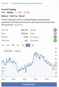 I think this one is particularly cynical. Many ShareSoc members will remember Frenkel Topping presenting at our events some years ago. We heard about the company’s “socially useful purpose”: providing specialist, high-quality financial advice to vulnerable people. These are often individuals who have suffered life-changing injuries, been disabled, and received large compensation payments that need to be carefully invested to last a lifetime.